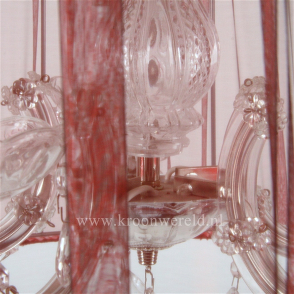 Het frame van deze lampenkap een gemaakt van metaaldraad. De stof van deze kap is uitgevoerd in prachtig organza met de kleur rood. Deze kap is te combineren met een kroonluchter van maximaal 55 cm.